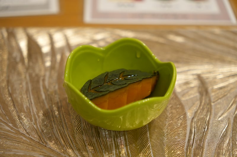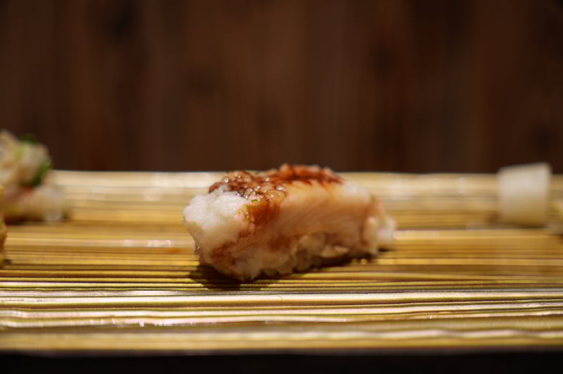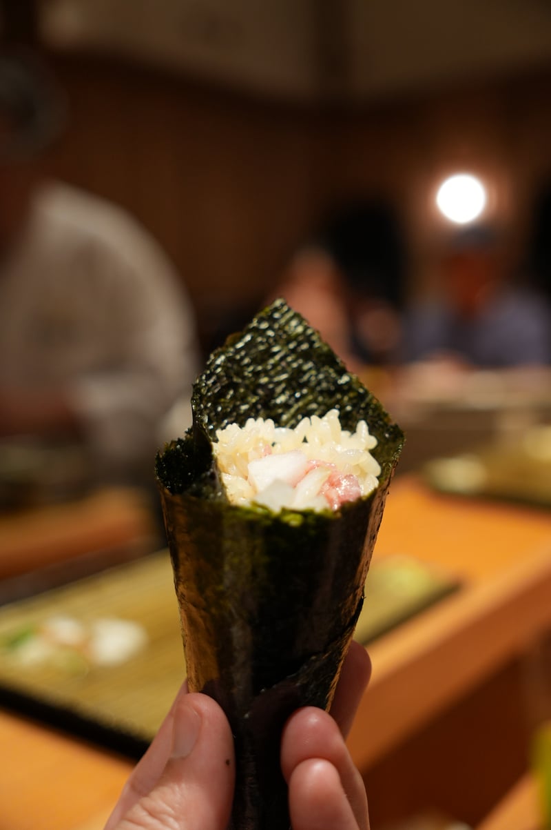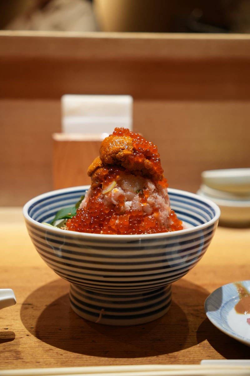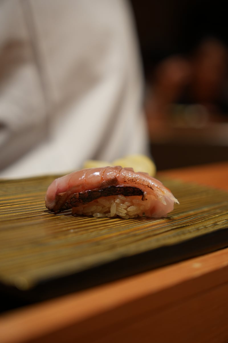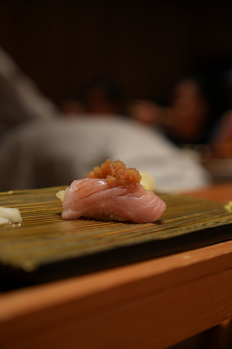 Overall, I think this was a super impressive sushi omakase experience, and probably some of the best I’ve had in recent memory. It both unfortunate and nice that Sawada didn’t allow photos, as I was able to focus a lot on the food. Though sadly couldn’t get any pictures of some of the beautiful looking dishes! Here are my notes. Appetizer: Steamed Nuts appetizer (2 kinds) Sashimi Course - Hirame (Flounder) - 3 cuts - Squid (3 pieces) + Uni (from 2 regions) - Abalone - Aburi Shima (Mackerel) - Charcoal seared - Sawara (Spanish Mackerel, 3 pieces) - Smokey with bacon-like texture - Octopus (2 pieces) - incredibly soft texture - Tomato (palate cleanser) - Chutoro (3 pieces) - Chutoro with Hakodate Murasaki Uni (slightly fattier than the previous piece) - Kuchiko (Sea cucumber + Egg) - Roll w/ Barracuda, shisho. No rice. Super refreshing. - Tuna Kama (Charcoal seared) - Ginger flavoured Daikon Hand Roll (Palate cleaner) Sushi - Tai (Red Snapper) - chewy texture - Ebodai - soft texture - Akagai (Ark shell) - crunchy ✨ - Shima Aji ✨ - Gizzard Shad (not huge fan of texture) - Katsuo Bonito w/ garlic salt - Baby Squid sushi (old style) - stuffed with sushi rice ✨ - Ikura (Salmon Roe) - really big serving, not too salty ✨ - Zuke (Soy Marinated Tuna) - Chutoro - Chutoro (slightly fattier) - Ootoro - Aburi Ootoro (center cut) - Pear (palate cleanser break) - Kurama Ebi (Tiger Shrimp) - Murasaki Uni - Anago Eel served two ways (salt+wasabi, sauce) - probably the softest eel I’ve ever had ✨ - Tamagoyaki Ending dish: Gooseberry Hozuki (“Strawberry Tomato”)