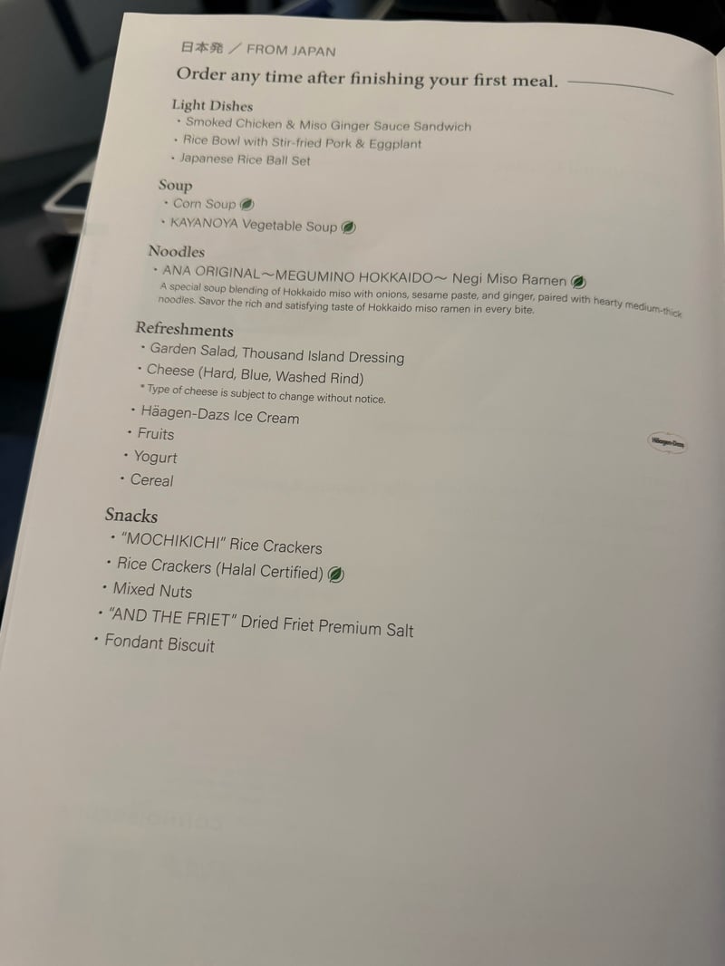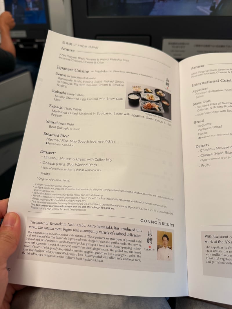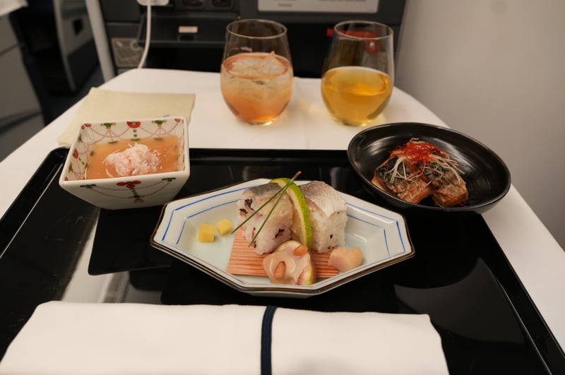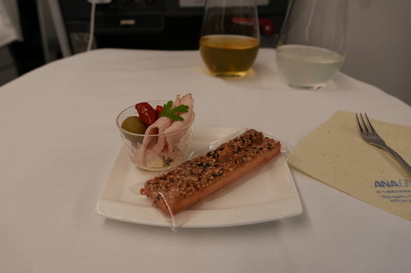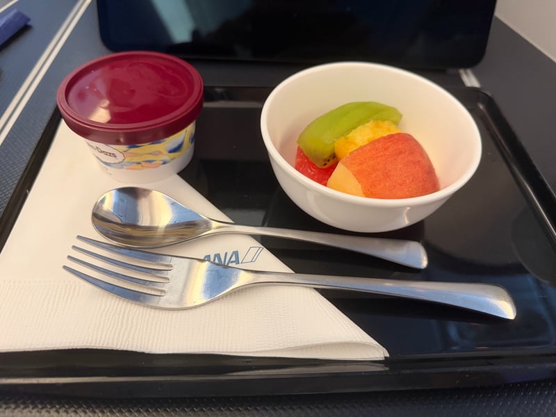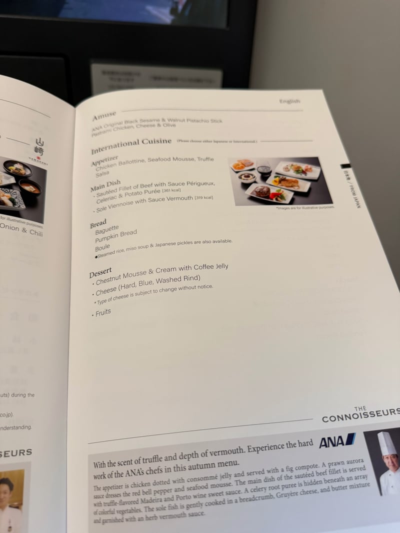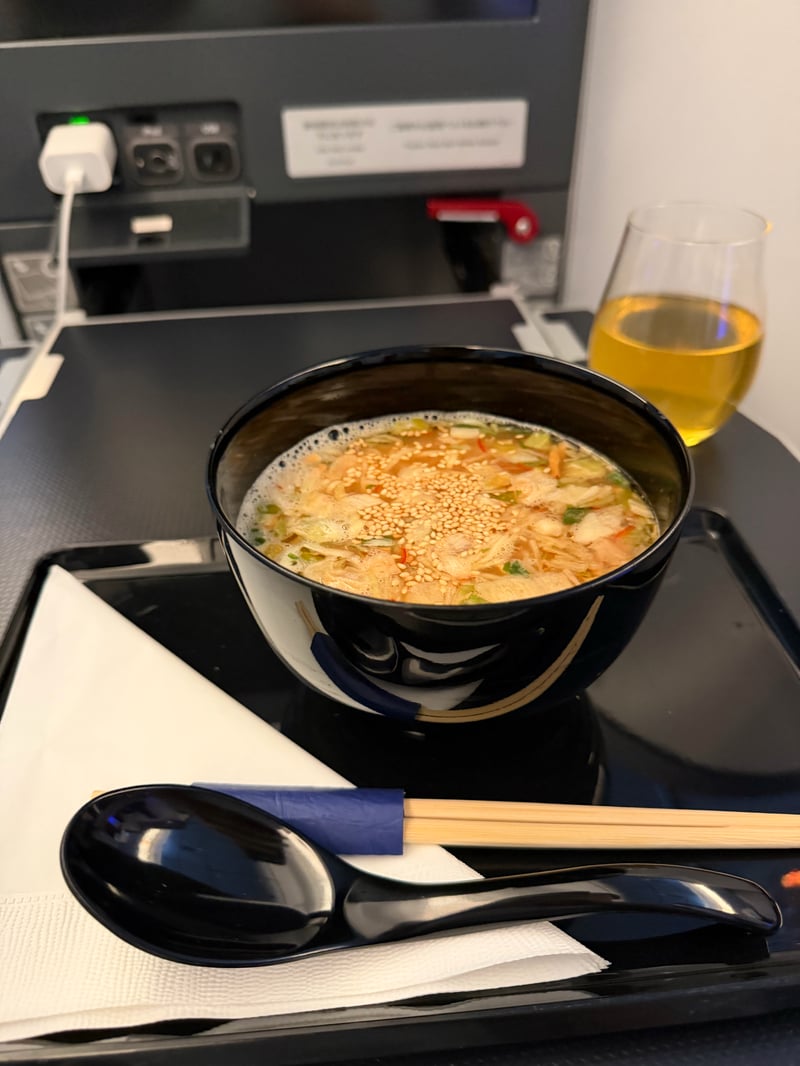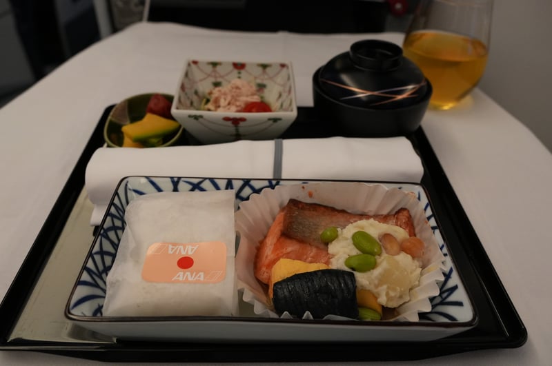 I was originally sad that we weren’t able to get the new “THE ROOM” seats, since the seats were definitely on the old side (there was an iPod cable!). However, the food options were nice. This was my first time taking ANA business, and I had heard that JAL had better food options, so I wasn’t expecting too much, but was pleasantly surprised by the food quality and taste.
