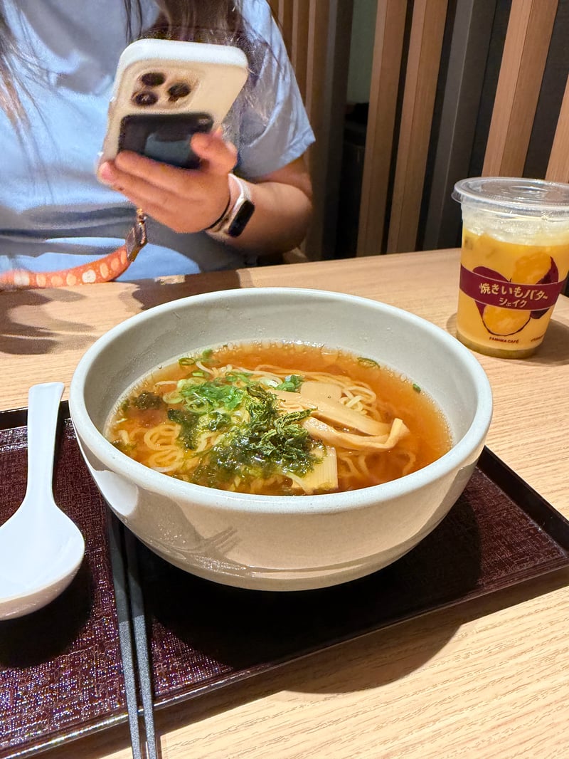 Complementary ramen at night mixes super well with Family Mart spicy fried chicken.