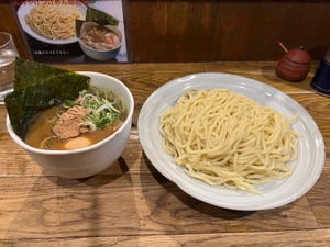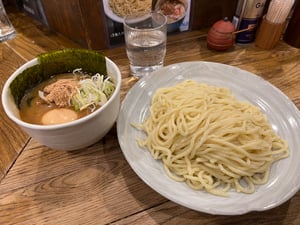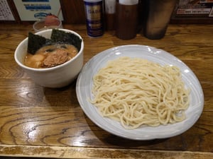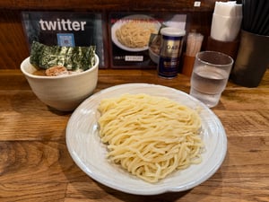 Delicious thick cold tsukemen noodles.